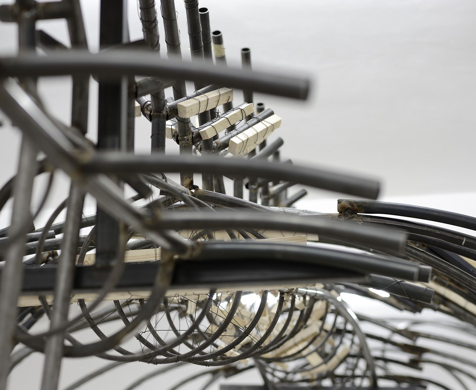 Fascinace kruhem, o které Houdek sám mluví a jež prostupovala jeho ranějšími díly, je v posledních letech patrná spíš v náznacích – v principu opakování i strojovité souměrnosti tvarů.